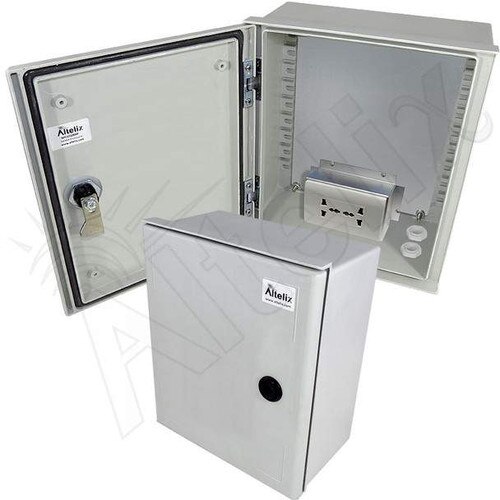 The Altelix NFC121006AU NEMA 3X Weatherproof NEMA Enclosure with 100-240VAC Universal Power Outlet and Equipment Mounting Plate is ideal for protecting equipment from harsh environments and tampering. Equipment designed for indoor use can now be located outside.