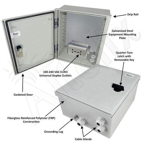 Altelix NFC121006AU - 12x10x6 NEMA 3X Fiberglass Weatherproof Enclosure with Equipment Mounting Plate & 100-240 VAC Universal Power Outlet