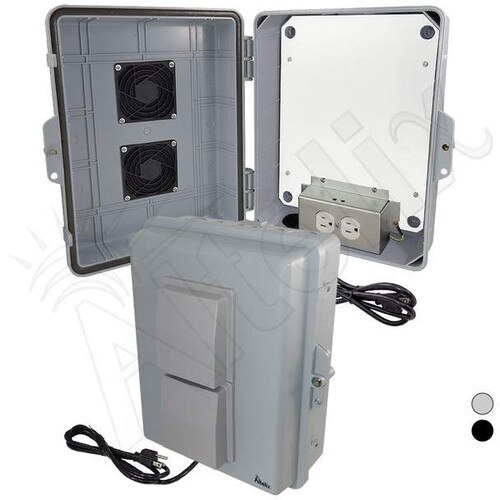 The Altelix NP141105VMA1C NEMA enclosure is simple to install because no wiring is required. Simply mount the enclosure and plug the pre-wired 5 foot power cord into a nearby outlet. The non-metallic equipment mounting plate features two pre-wired 120VAC power outlets for your equipment. A cable grommet on the enclosure allows cables to be connected to internal devices. Knock-outs are also provided on the enclosure for additional wiring. Extra cable grommets are included with the accessory kit