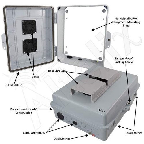 The Altelix NP141105VMP Vented Polycarbonate + ABS NEMA Weatherproof Enclosure is ideal for protecting equipment from harsh environments and tampering. Equipment designed for indoor use can now be located outside.