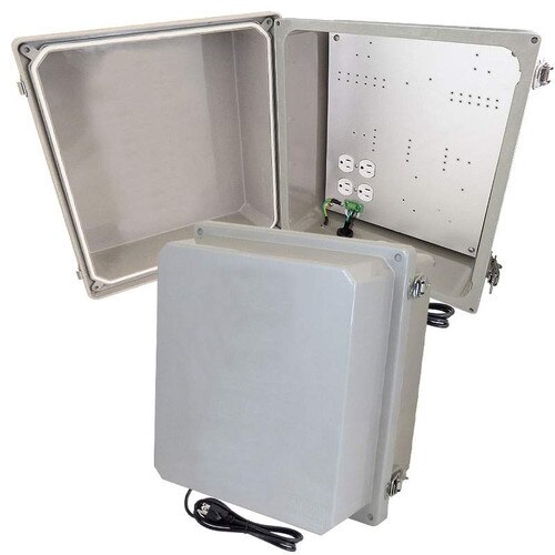 Altelix 14x12x10 Fiberglass Weatherproof NEMA Enclosure with Aluminum Mounting Plate, 120V Outlets & Power Cord