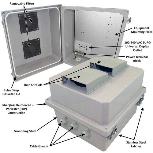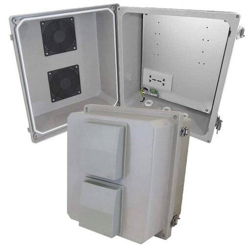 Altelix 14x12x10 Vented Fiberglass Weatherproof NEMA Enclosure with 100-240 VAC Universal Power Outlet