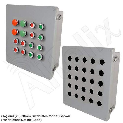 - Available with either 16, 20, 24, 25 or 30 Precut Pushbutton Mounting Holes (22mm or 30mm)