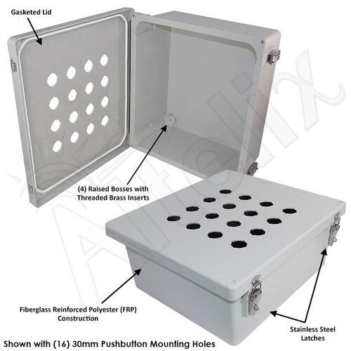 Altelix NF141206-PB30-16 - 14x12x6 Fiberglass NEMA 4X Customizable Weatherproof Pushbutton Enclosure