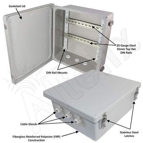 Altelix 14x12x6 Industrial DIN Rail Enclosure Fiberglass NEMA 4X IP66 (NF141206-DIN)