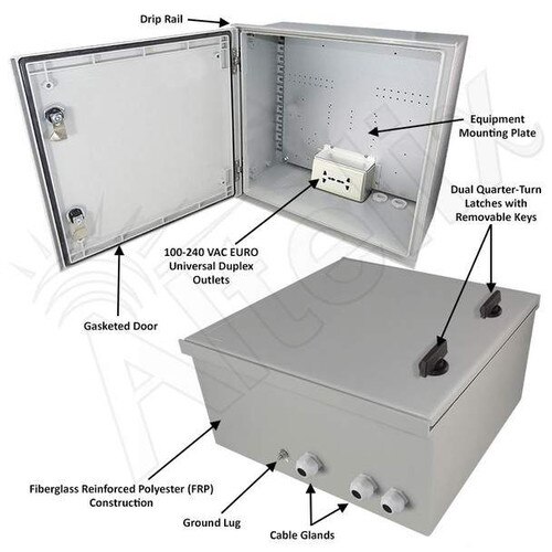 Altelix NFC161608AU - 16x16x8 Fiberglass Weatherproof NEMA Enclosure with 100-240 VAC Universal Power Outlet