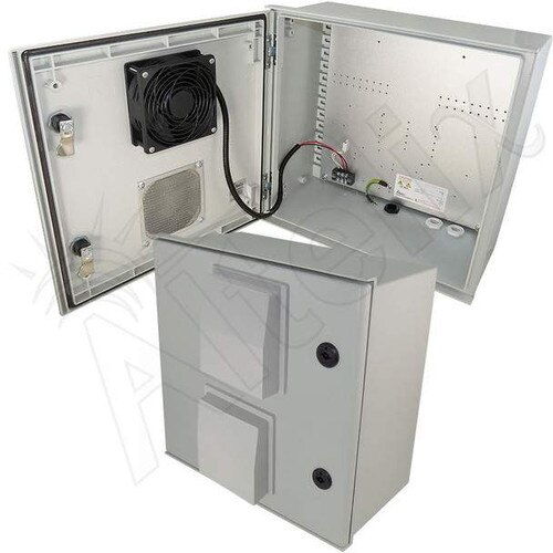 Altelix NFC161608VFD4 - 16x16x8 Vented Fiberglass Weatherproof NEMA Enclosure with 48 VDC Cooling Fan