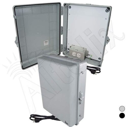 The Altelix NP171406MA1C NEMA enclosure is simple to install because no wiring is required. Simply mount the enclosure and plug the pre-wired 5 foot power cord into a nearby outlet. The non-metallic equipment mounting plate features two pre-wired 120VAC power outlets for your equipment.