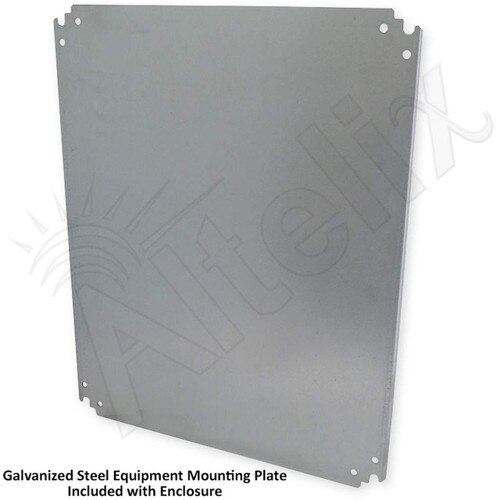 This configuration consists of the steel NEMA enclosure with hinged door and a 18 Gauge (1.2mm thick) zinc coated galvanized steel plate for mounting and securing equipment. The enclosure and plate can be drilled and modified by the installer to suit unique site requirements.