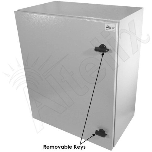 Both the enclosure and door are finished in a rugged epoxy polyester textured light gray powder coat finish.
