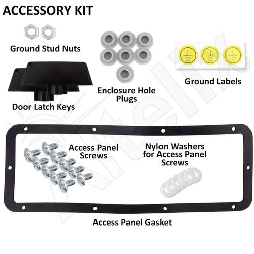 This rugged IP66 rated enclosure features continuous seam welded 18 Gauge (1.2mm thick) steel construction. The enclosure door is fully gasketed making this enclosure suitable for use indoors or outdoors. The door features reinforced hinges and dual quarter-turn latches to secure the enclosure. Internal grounding studs are provided on both the door enclosure.