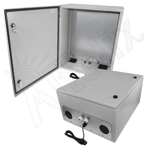 Altelix NS242012VA1C - 24x20x12 Vented Steel Weatherproof NEMA Enclosure with Dual 120 VAC Duplex Outlets and Power Cord