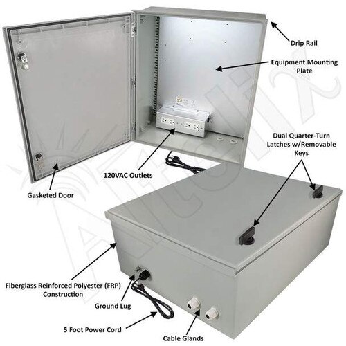Altelix NFC242009A1C - 24x20x9 NEMA 3X Fiberglass Weatherproof Enclosure with Equipment Mounting Plate, 120 VAC Outlets & Power Cord