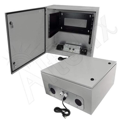 Altelix NS242412VFA1C-20A-R6U - 24x24x12 120VAC 20A Steel NEMA Enclosure with 19" Wide 6U Rack, Dual Cooling Fans, 20A Power Outlets & Power Cord