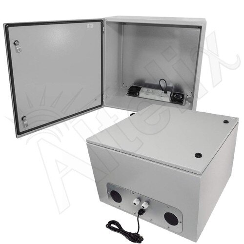 Altelix NS242416VFHA1C - 24x24x16 Steel Heated Weatherproof NEMA Enclosure with Dual Cooling Fans, 400W Heater, 120 VAC Outlets and Power Cord