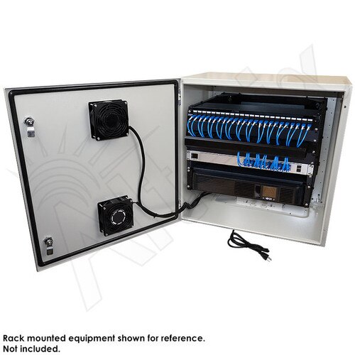 The Altelix NS242416LVFA1C-R8U 19" Rack 8U Steel Fan Cooled Weatherproof NEMA Enclosure with 120VAC Power and Equipment Plate is ideal for protecting rack mountable equipment from harsh environments and tampering. Equipment designed for indoor use can now be located outside.