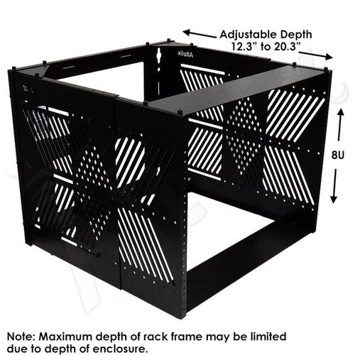 Installation Note: Once installed in the enclosure, this 8U rack has an adjustable depth from 12.3" (313.7mm) to 14" (355.6mm). Before ordering please check the dimensions of the equipment to be installed to ensure proper fit.