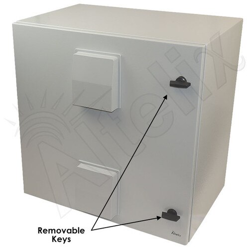 Both the enclosure and door are finished in a rugged epoxy polyester textured light gray powder coat finish.