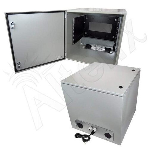 Altelix NS242424VFA1C-20A-85-R6U - 24x24x24 120VAC 20A Steel NEMA Enclosure for UPS Power Systems with 19" Wide 6U Rack, 20A Power Outlets, Power Cord & 85°F Turn-On Cooling Fans