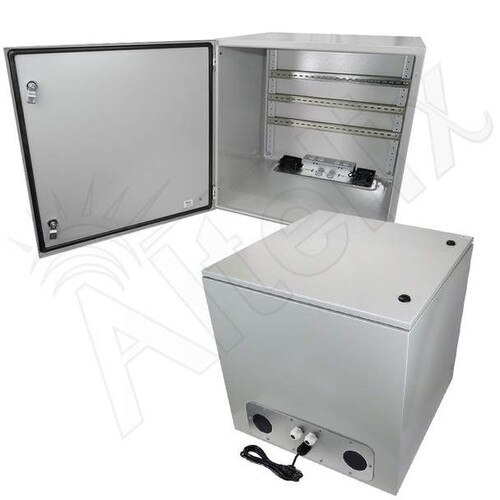 Altelix NS242424VFA1C-DIN - 24x24x24 Industrial DIN Rail Steel Weatherproof NEMA Enclosure with Dual Cooling Fans, 120 VAC Outlets and Power Cord