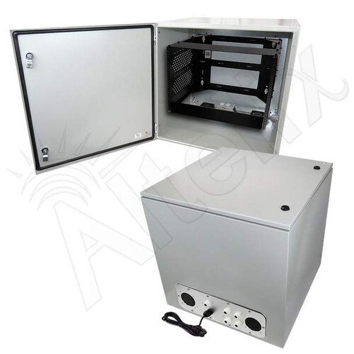 Altelix 24x24x24 Steel Weatherproof NEMA Enclosure with Heavy Duty 19" Wide Adjustable 8U Rack Frame, Dual Cooling Fans, Single 120 VAC Duplex Outlet and Power Cord (NS242424VFA1R2C-R8U)