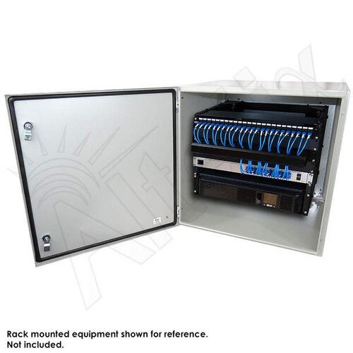 The Altelix NS242424VFA1R2C-R8U Steel Fan Cooled Weatherproof NEMA Enclosure with 120VAC Power and Equipment Plate is ideal for protecting rack mountable equipment from harsh environments and tampering. Equipment designed for indoor use can now be located outside.