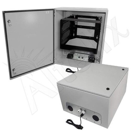 Altelix 28x24x16 Steel Weatherproof NEMA Enclosure with Heavy Duty 19" Adjustable 8U Rack Frame, Dual 120 VAC Duplex Outlets, Power Cord & 85°F Turn-On Cooling Fans