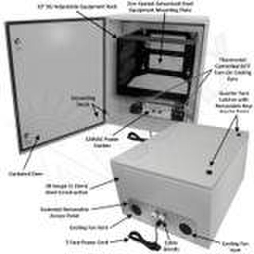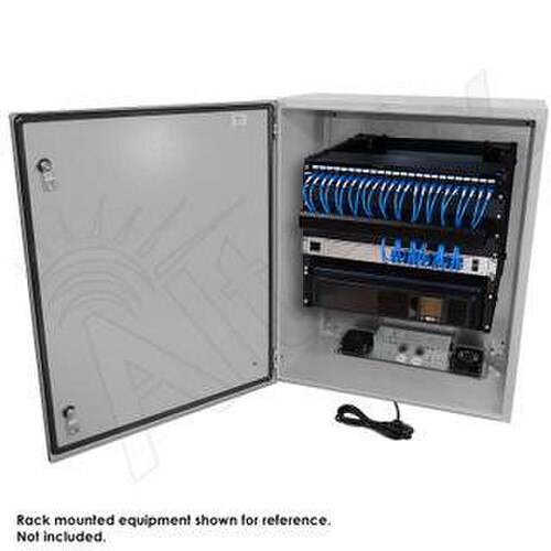 The Altelix NS282416VFA1C-85-R8U 19" Rack 8U Steel Fan Cooled Weatherproof NEMA Enclosure with 120VAC Power and Equipment Plate is ideal for protecting rack mountable equipment from harsh environments and tampering. Equipment designed for indoor use can now be located outside.