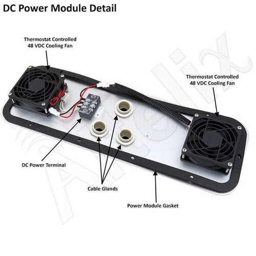 - Dual 48VDC Thermostat Controlled Cooling Fans