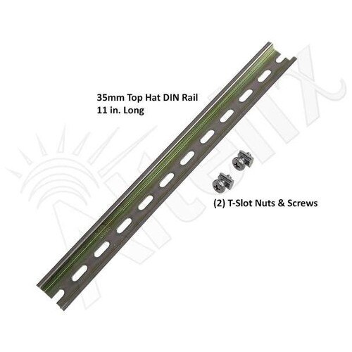 The Altelix DRS-NFC12 is a 35mm Top Hat DIN Rail Kit for use with the Altelix NFC161208 Series NEMA enclosures. The kit consists of a 11" long 20 gauge steel 35mm top hat DIN rail and two sets of T-Slot Nuts and Screws. This DIN rail kit easily mounts into the NFC enclosure using the internal T-Slot Nut mounting system in the enclosure.