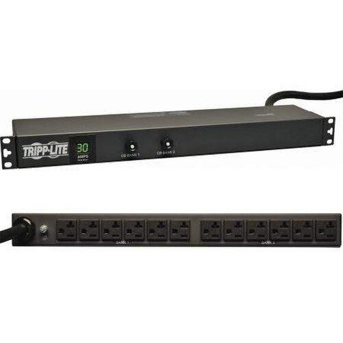 TRIPP LITE Single-Phase Metered PDU 30A 120B 1U rackmount 12 NEMA 5-15/20R outlets NEMA L5-30P input plug.