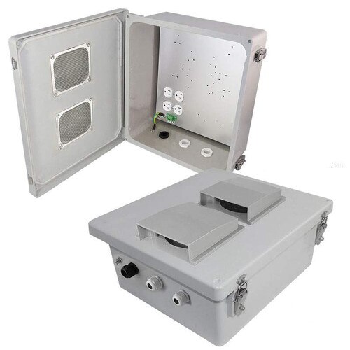 Altelix 14x12x6 Fiberglass Weatherproof Vented NEMA Enclosure with 120 VAC Outlets (NF141206VA1)