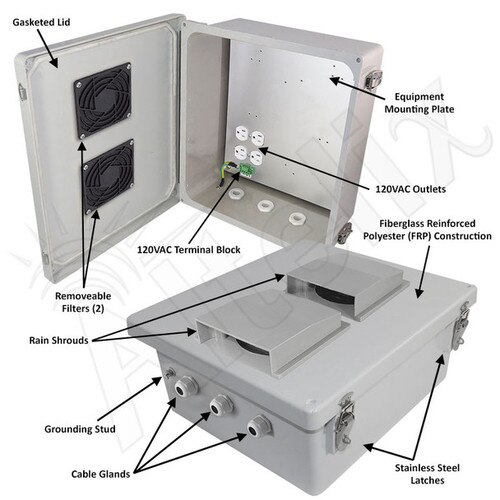 Altelix NF141206VA1 - 14x12x6 Fiberglass Weatherproof Vented NEMA Enclosure with 120 VAC Outlets