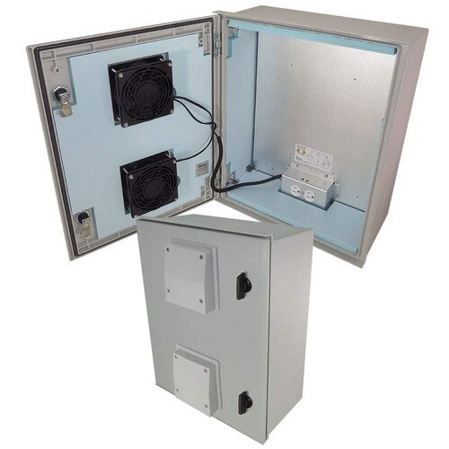Altelix NFC201608VFHA1-Z - 20x16x8 Vented Insulated Fiberglass Heated Weatherproof NEMA Enclosure with Dual Cooling Fans, 200W Heater and 120 VAC Outlets