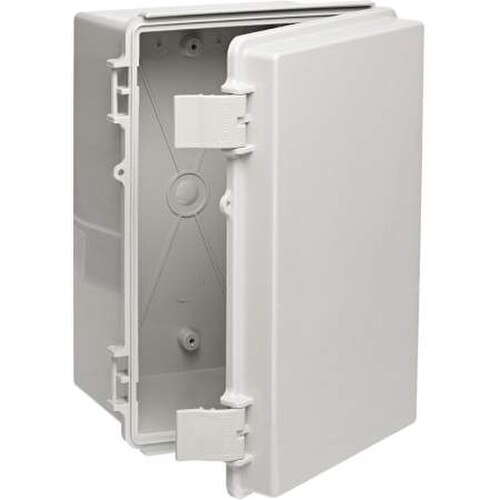 Plastic Economy Outdoor NEMA enclosure w/ solid door. Light gray finish.Ext:11-51/64"Lx7-55/64"Wx5-7/64"H Int:11-11/64"L x 7-3/16"W x 4-13/16"H