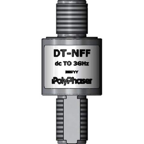 Bidirectional, DC pass RF coaxial protection for high power DC to 3.0GHz. The DT-NFF offers weatherproof coaxial lightning protection in a value-priced N-connector format. Meeting IEC 60529 IP 67 environmental standards, the In-line EMP surge protector by PolyPhaser provides superior protection with max RF power of 40W and 50ohms impedance.
