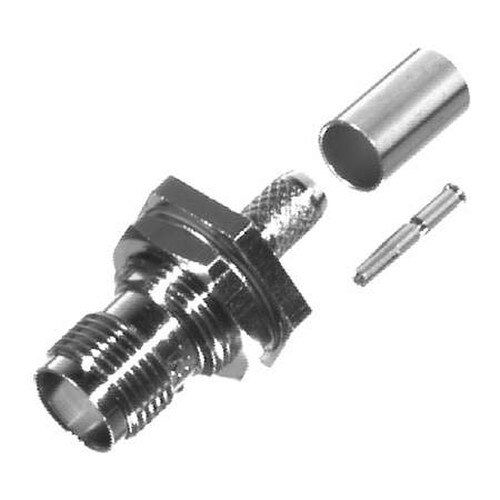 RF INDUSTRIES TNC female bulkhead connector for RG8X and ultralink cables. Crimp style. Nickle plated body gold center pin.